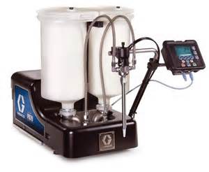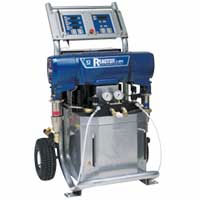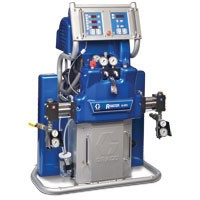 Graco's Reactor E-10 is a small, ready-to-use system that helps you get in and get smaller jobs done fast without sacrificing performance. The Reactor E-10 sprayers are ideal for plural-component spray, joint-fill jobs and touch-ups. With smart controls that are easy to setup and simple to operate, the E-10 is a natural complement to any proportioning equipment line-up.